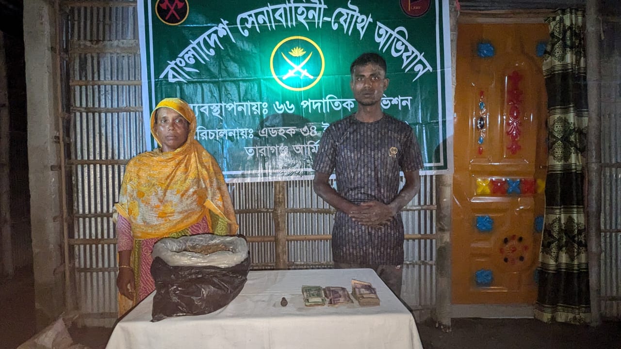 রংপুরের তারাগঞ্জে ১কেজি ১০০ গ্রাম গাঁজা সহ আটক দুই