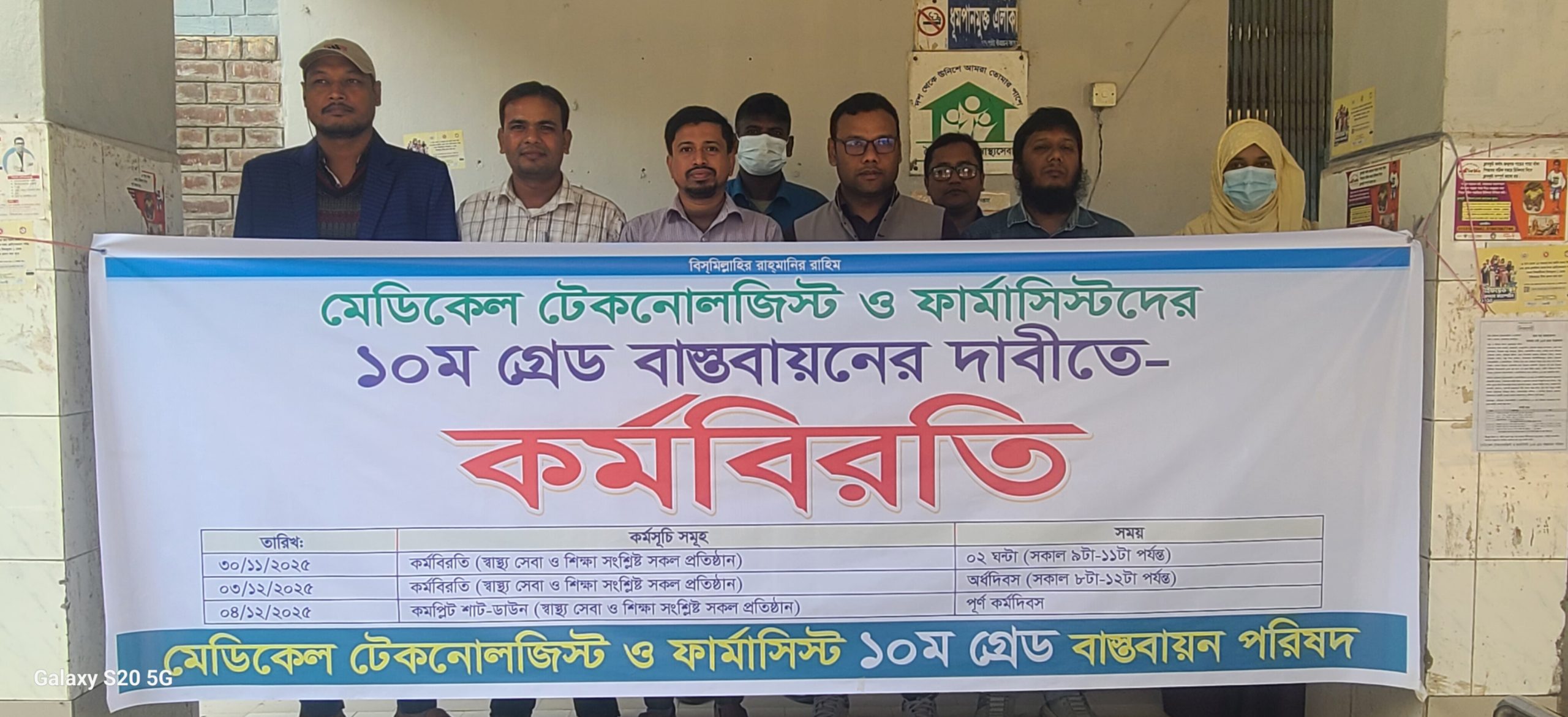 ১০ম গ্রেডে উন্নীতকরণের দাবিতে তারাগঞ্জ উপজেলায় টেকনোলজিস্ট ও ফার্মাসিস্ট দের দুই ঘন্টার কর্মবিরতি পালন।